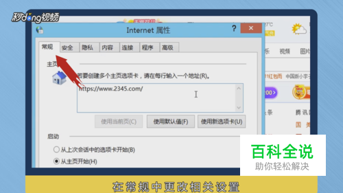 在弹出的窗口中选择“常规”,删除主页中的网址信息。