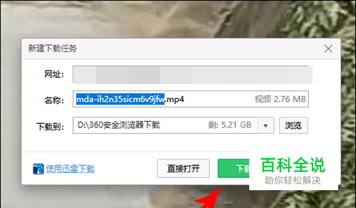 接着在360浏览器上根据下载提示信息,选择视频下载保存的位置,然后点击下载或直接播放