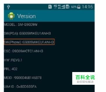 手机软件版本查询方法(以SM-9009W为例): 软件版本可通过在拨号盘输入*#0000#进行查询,软件版本显示如下图所示(以SM-G9009W电信版S5为例,注意:软件版本前几位为手机型号,请从手机型号之后的代码开始核对软件版本)