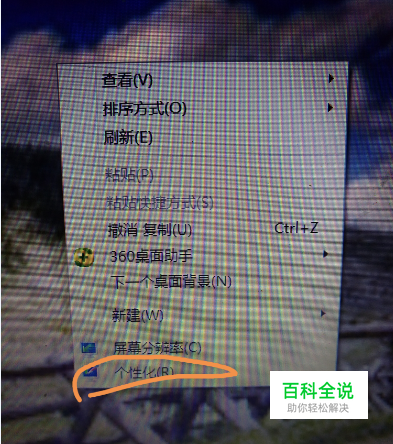其次,我们就要来进行操作了,在电脑桌面空白的地方,鼠标右击,之后选择最下方的一列“个性化”(如图所示),就会出现一些电脑的基本设置。