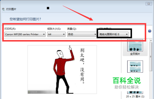 一般红色框里的不需要调整 把红色框里的黑色框的”纸张类型“改一下就好啦(改成什么?你买相纸的时候包装上有纸张类型的介绍)