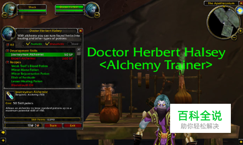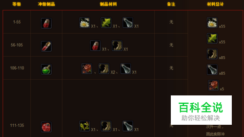 炼金术1-125级: 这阶段主要通过制作治疗药水升级,用到的草药主要为出生地附近的低级草药。准备材料:宁神花55、银叶草55、石南草85、魔皇草5、跌打草25、水晶瓶85。(RP会有影响因此实际冲的时候建议各种材料稍微多准备一点)