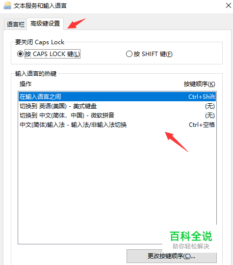在文本服务和输入语言设置界面里,选择“高级键设置”,下面的“输入语言的热键”中改变您要改变的顺序和热键保存即可。