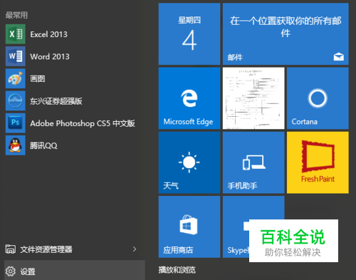 在开始菜单中点击设置选项。