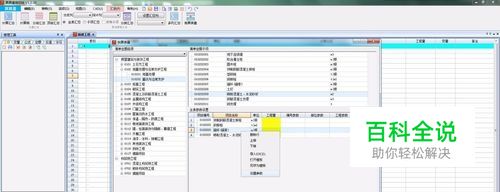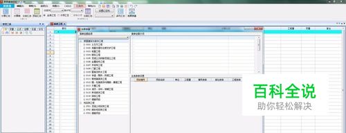 3、左边为目录栏,可以选择相应定额目录。右上为子目选择列表,双击和右键添加项目均可以往下面的主表添加清单或定额条目。