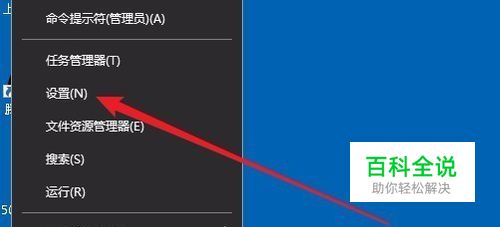 在Windows10桌面,右键点击左下角的“开始”按钮,然后在弹出的菜单中选择“设置”菜单项。