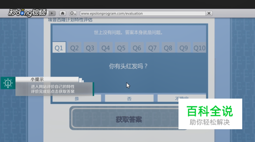 首先按键盘上的上方向键打开手机进入网站,浏览器搜索Eyefind,进入网址评价自己的特性。