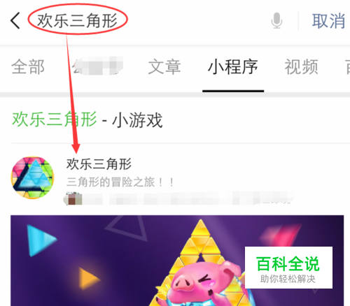 手机打开微信, 搜索输入【欢乐三角形】打开小程序,如图所示。