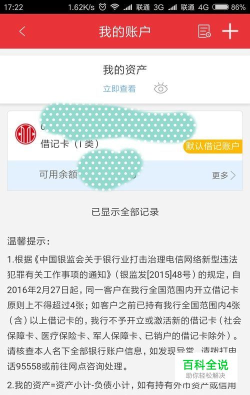 点击我的资产,可以看到我的银行卡信息点击即可查看卡内可用余额信息,如图所示。