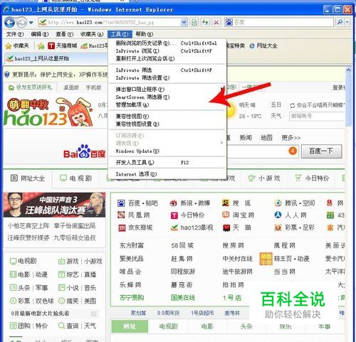 打开IE浏览器,单击[工具]菜单
