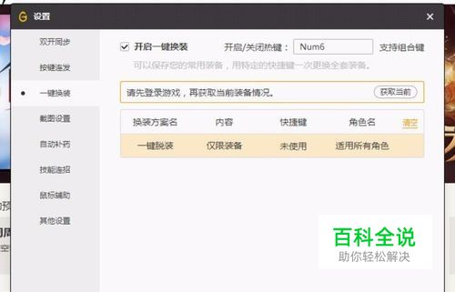 接着添加方案,这个方案就是现在穿的这套装备,然后设置按键以及名字,这个按键就是穿上这套装备的按键