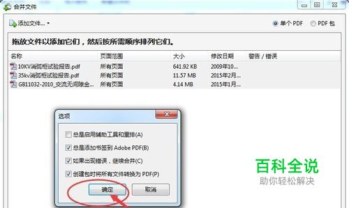 弹出合并文件对话框,在此对话框中,我们先把选项设置好,然后确定