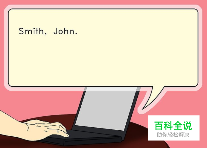 注明作者的名字。作者的名字应该按照姓、名的顺序,然后加上句号 Smith, John.