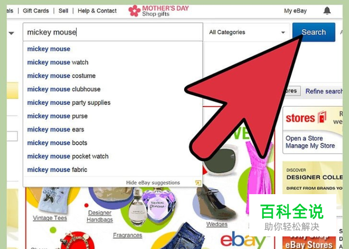 搜索商品。你可以在主页顶部的搜索框中输入关键词来搜索特定商品。另外,你也可以在涵盖了从时装、电子到家用的分类列表里浏览,看看哪些商品在售。正在进行的拍卖都会列表显示,你可以来回滚动查阅对比。