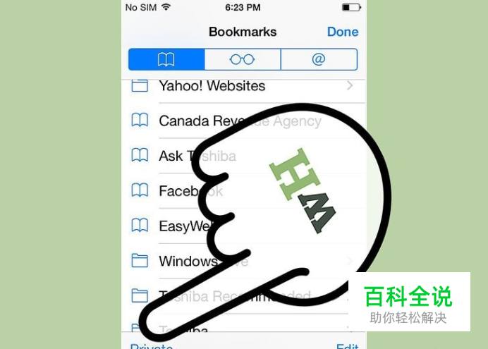 点击页面底部的书签图标,图标看上去就像是一本打开的书。