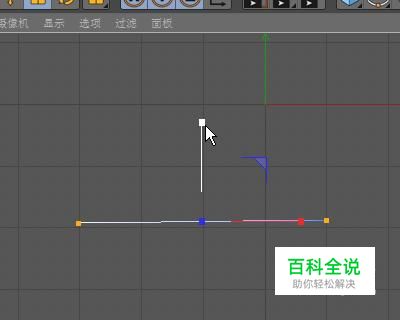 接着,我们再按下键盘的T键,调出缩放工具;这时,我们留意看样条线上的Y轴向的箭头与X轴向的箭头,本来是箭头形状的现在变成了实心的小方块。这表示,现在是处于缩放的状态。