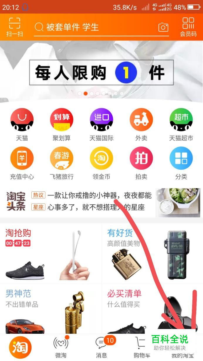 首先要在手机上打开手机淘宝,然后点击右下角的“我”。