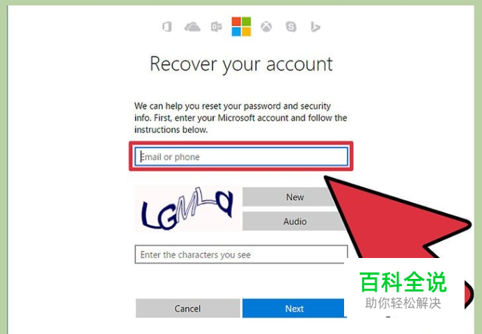 在空白处输入你注册Microsoft帐户时使用的电子邮件地址。Microsoft帐户通常以live.com、hotmail.com或outlook.com结尾。如果网站无法识别你的帐户名,要确保你输入了完整的地址。比如输入,而不是joesmith。电子邮件地址栏下方有一张图片,根据指示输入图片里面的字符,然后点击“下一步”。