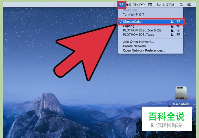 在恢复模式下连接网络。如果电脑用以太网电缆连接到网络(“有线”网络),你应该已经连上网了。如果要连接无线网络,把滑鼠鼠标移到屏幕顶端,Wi-Fi图标出现后,点击它连接网络。