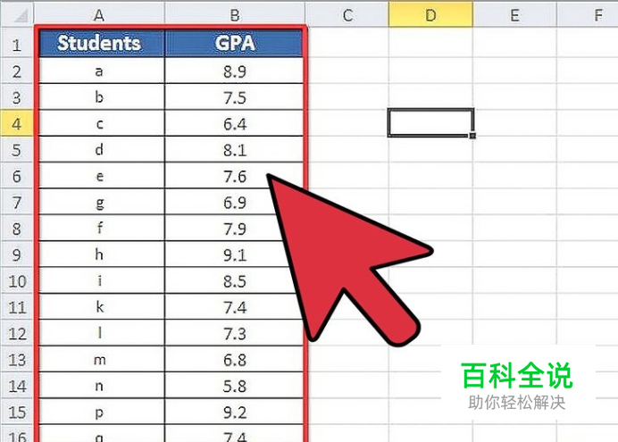 理解“表格数组”。在表格中可以使用单元格组合代表完整范围的数据。 第一个单元格是工作表格的左上角单元格,第二个单元格是你所需数据的右下角单元格。 还是使用老师的班级学生成绩列表作为例子,假设你有两列数据。第一列是全部学生的名字,第二列是他们的平均成绩(GPA)。如果你有 30 个学生,他们的名字列表从 A2 开始,因此第一列数据是从 A2-A31。第二列数据是学生成绩,单元格范围是 B2-B31。而整个表格数值为 A2:B31。 注意不要包括工作表头。这意味你不要在表格数组中包含每一列的名称,例如“学生姓名”和“GPA”。在你的工作表中,表头单元格是 A1 和 B1。