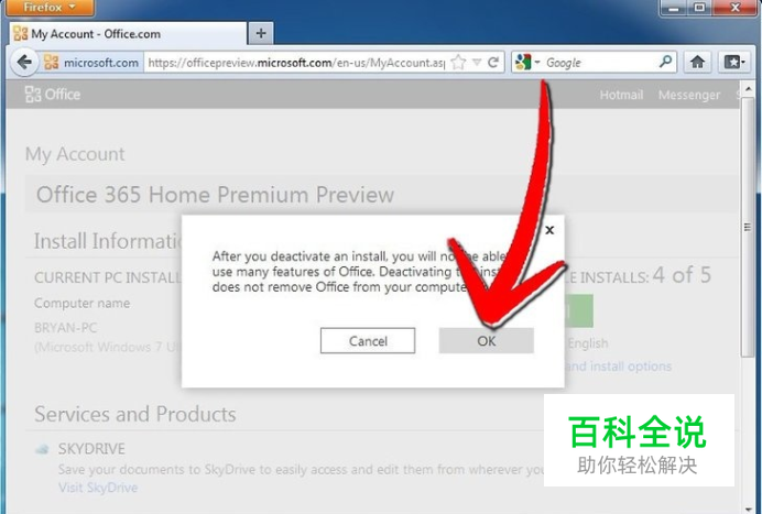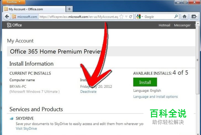 登录您使用的Window Live / Hotmail帐户,点击“我的帐户 - Office.com ”网页上蓝色的“停用”链接。