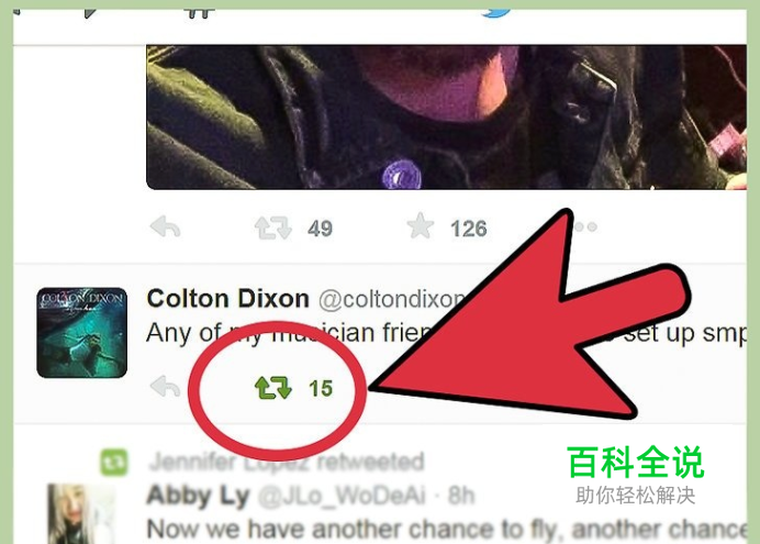找到一条你转发的没有关注的人的推特。经常,一些你没有关注的人会发一些状态,被一些你关注的人转发。你可以通过灰色的“被乔伊·推特用户转发”和一个灰色按钮来辨认。
