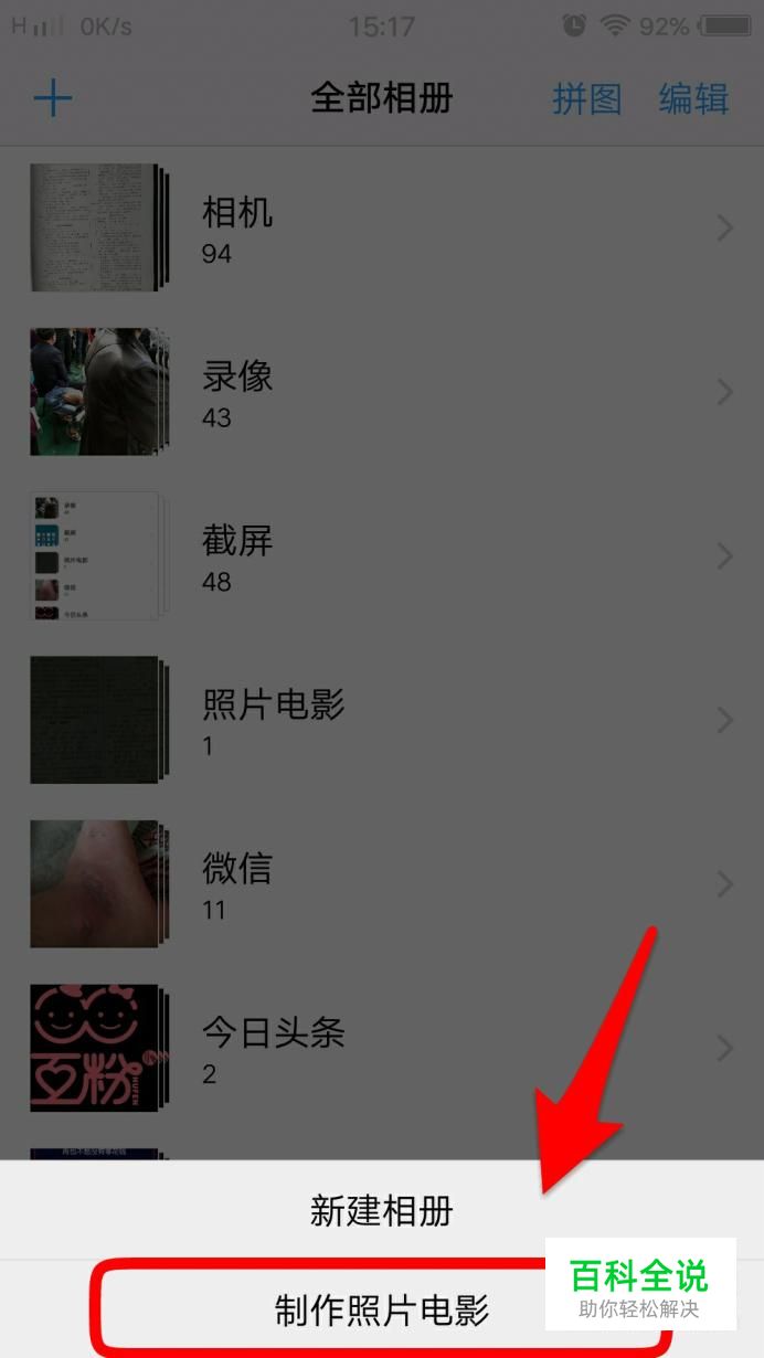 有时候我们想要用手机中的图片来制作一个视频,却不知道该用什么样的软件来制作,其实手机相册自带一个功能,可以完成这样的制作,下面我来给大家分享一下用相册制作视频的方法。