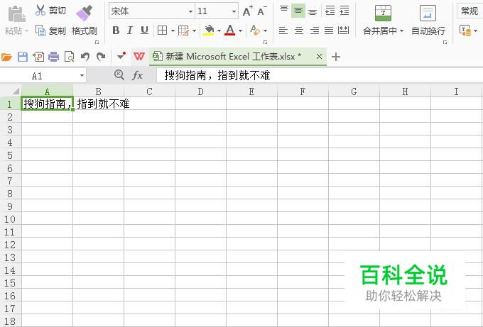 首先,打开EXCEL表格,在一个单元格内输入一行长度超出单元格范围的文字。