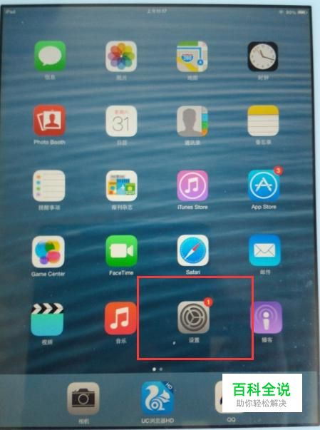 1. 苹果系统 打开ipad,进入到桌面,我们会看到我们的界面上有一个设置,我们点进去。