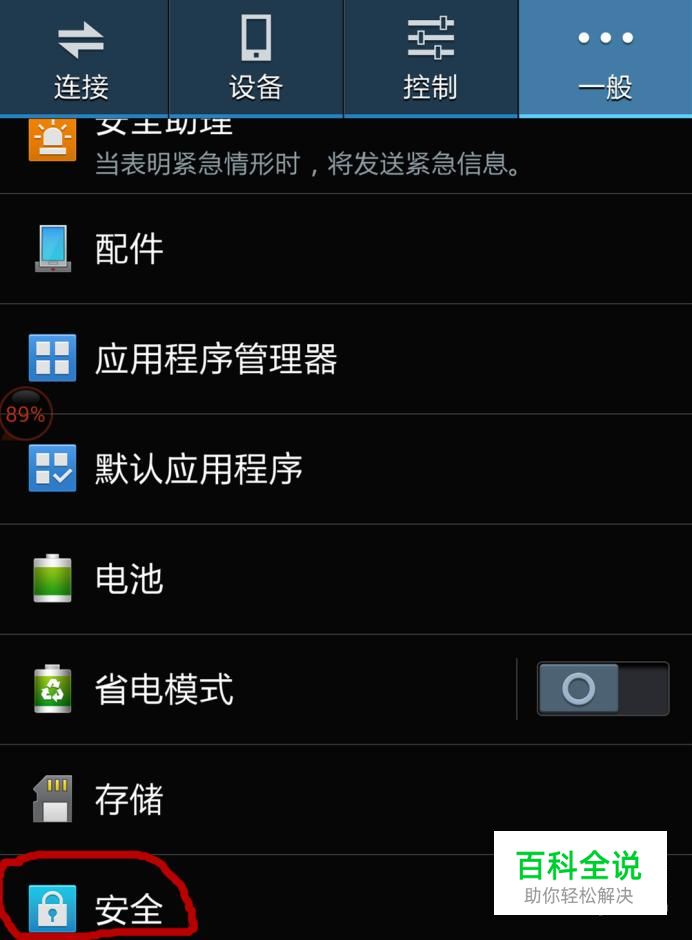 进入“设定”后,点上边的“一般”,然后下拉页面就会看到“安全”选项。