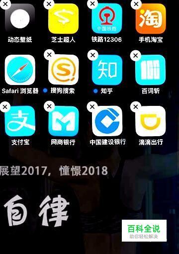 按住其中一个图标按钮,待全部图标处于动态,并且左上角有个删除符合,如下图显示。