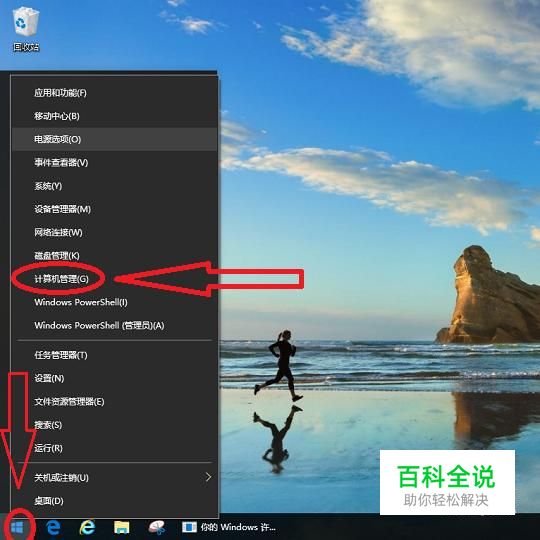首先我们选中电脑屏幕左下角的 Windows 图标,然后单击右键,找到计算机管理,单击进入。