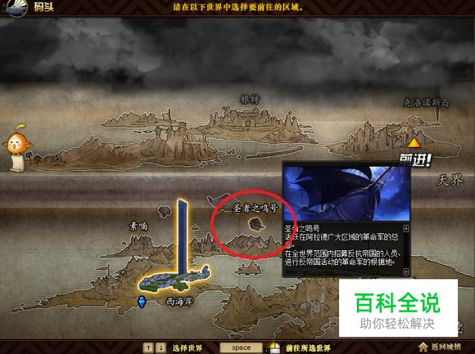 首先,使用西海岸码头传送阵传送至圣者之鸣号地区。