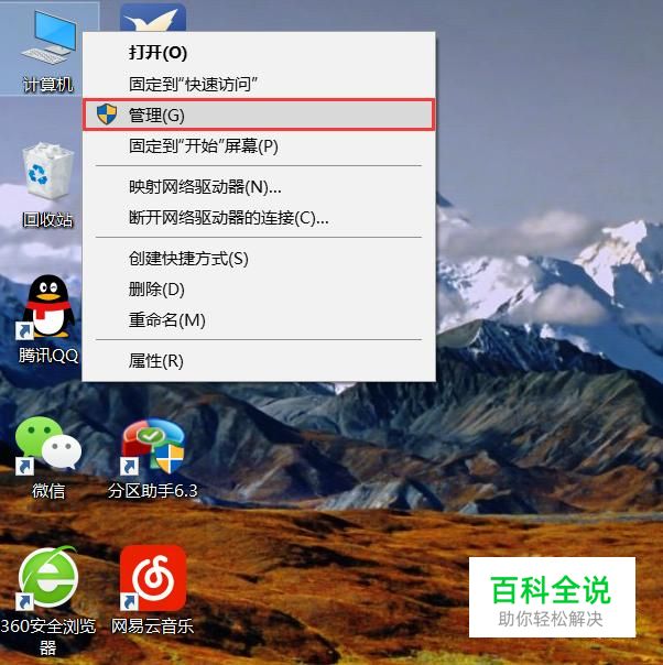 首先,在桌面上对着计算机窗口击右键,选择“管理”菜单选项。