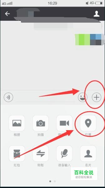 加号 然后来到发送框,点击【+】号,选择【位置】,如下图所示: