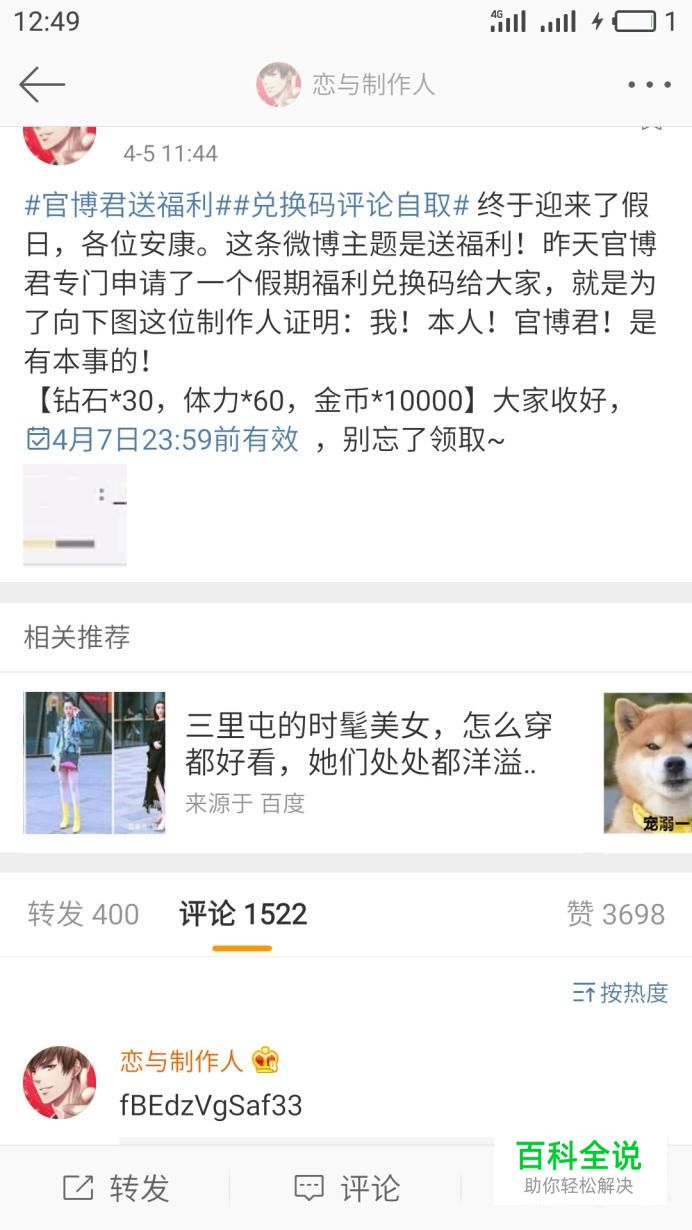 再就是微信公众号的关注。这里有时会放一些恋与制作人游戏和三次元社会的广告,广告下面不出意外的话都会有些补偿福利。