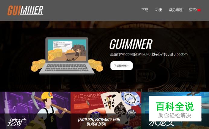 下载比特币专用挖矿软件——GUIMiner软件 打开浏览器,打开网址:https://guiminer.org/zh 点击“下载”按钮 保存软件到本地硬盘