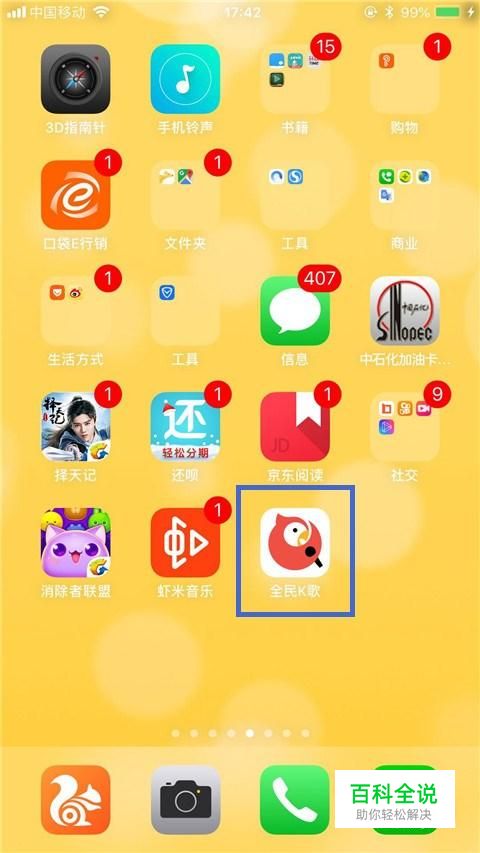 首先在我们的手机桌面上找到全民k歌并点击它,如下图所示。