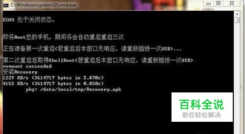 在电脑上操作 开始获取ROOT权限。 打开下载的ROOT_MOTO_2.3.6.rar解压,运行,等待完成后窗口会自动关闭。 手机在此期间会自动重启多次,属于正常现象,耐心等待即可。