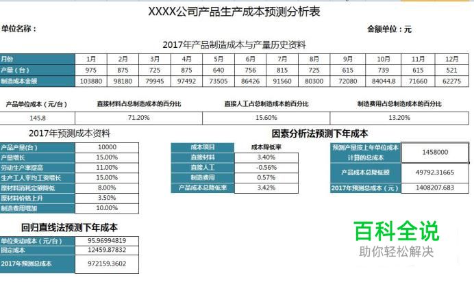 成本预测EXCEL表格模板