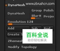 使用Dynamesh:选择无细分级别的任意模型点亮Tool>Geometry>Dynamesh,进入Dynamesh状态,拓扑便会重建。精度可在按钮下方的Resolution修改,128以下即可。
