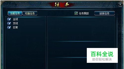 任务包括主线任务、支线任务、师门任务、通缉任务、帮派任务、每日任务