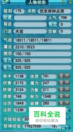 人物属性加点推荐 这套是全耐属性、气血近2W,不过速度就不行了,单P的话可以说无敌,然而群P的话,还是要略作调整的。