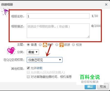 然后新建一个相册并选择仅自己可见,如下图所示。