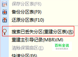 在u盘上点击右键,会看到搜索已丢失分区。点击搜索已丢失分区。