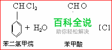 输入反应式右边 “CHO”和竖向的单键。把光标移到 “CHCl2”的后面,输入空格把光标移到反应式右边苯环的上方,输入“CHO”,把光标移到下一行,把光标移到合适的位置后输入竖向的化学单键。必要时添加或删除空格使“CHO”、键号和下面的苯环对齐。然后把光标移到最下面一行的末尾,输入“+ 2HCl”。