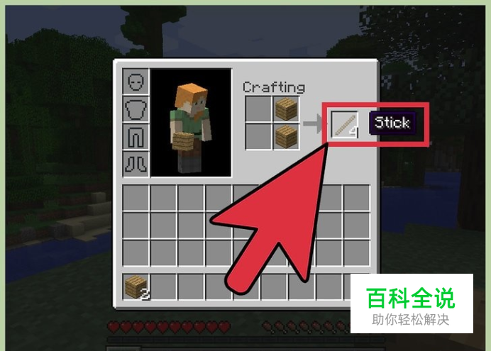 把两个木板做成木棍。你可以在中央格放一个,下面中间放一个,做出4个木棍。