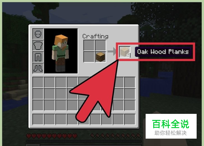 收集四块木板。你可以拿一个木块放在制作台里拆成木板。