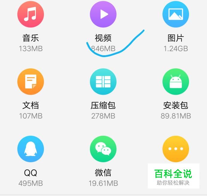 首先,打开手机桌面的“文件管理”,点进“视频”。
