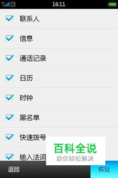 选择备份时间点,进入恢复选择界面,您可以有选择的恢复选定的数据类型,请选择UI右下角“恢复”提示。
